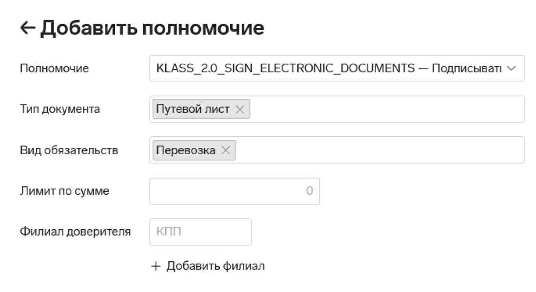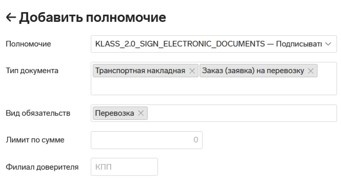 Выбор полномочий с ограничениями для подписания ЭТрН в Контур.Доверенности